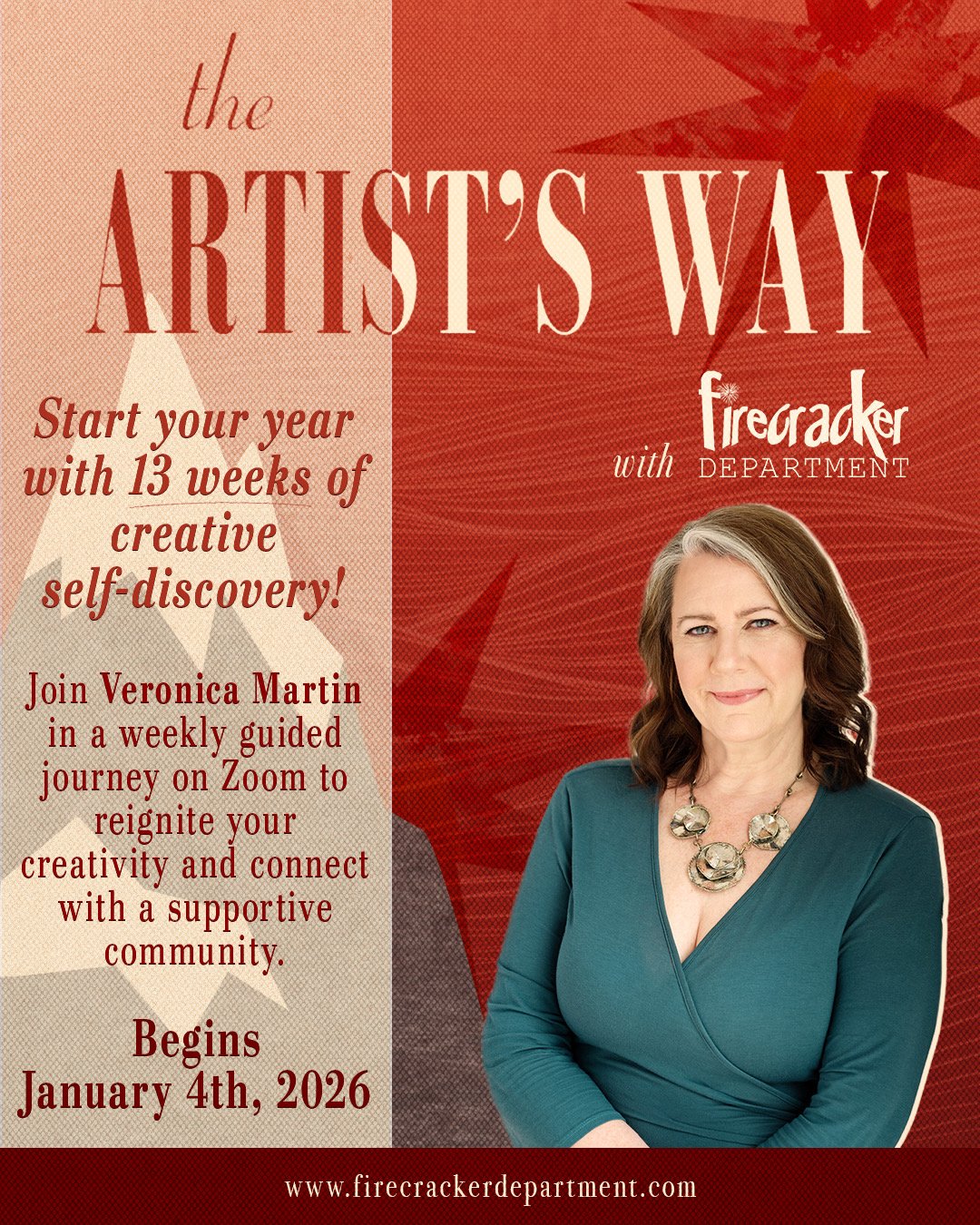 I’ve led Artist’s Way programmes for the past 7 years for an incredible group of female and non-binary creatives in the Firecracker Department. We’ve met online each week to discuss our reactions to that week’s work, to share inspiration in a private Facebook group and to support each other’s creative growth. If you would like to join us in January of 2026, REGISTER HERE